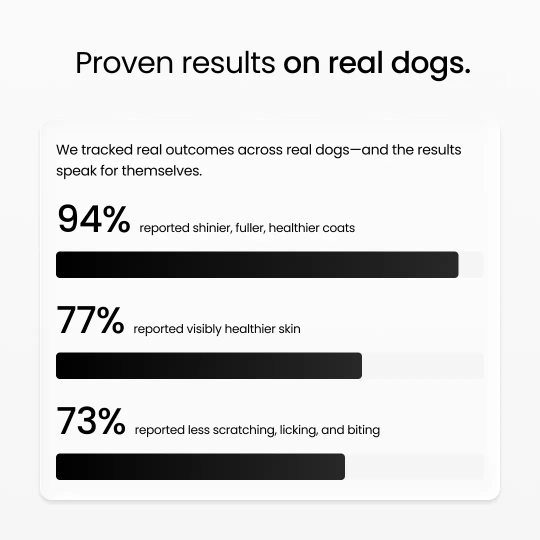 If you don’t see a visibly healthier coat or less itching, we’ll give you a full refund. No forms. No hassle.