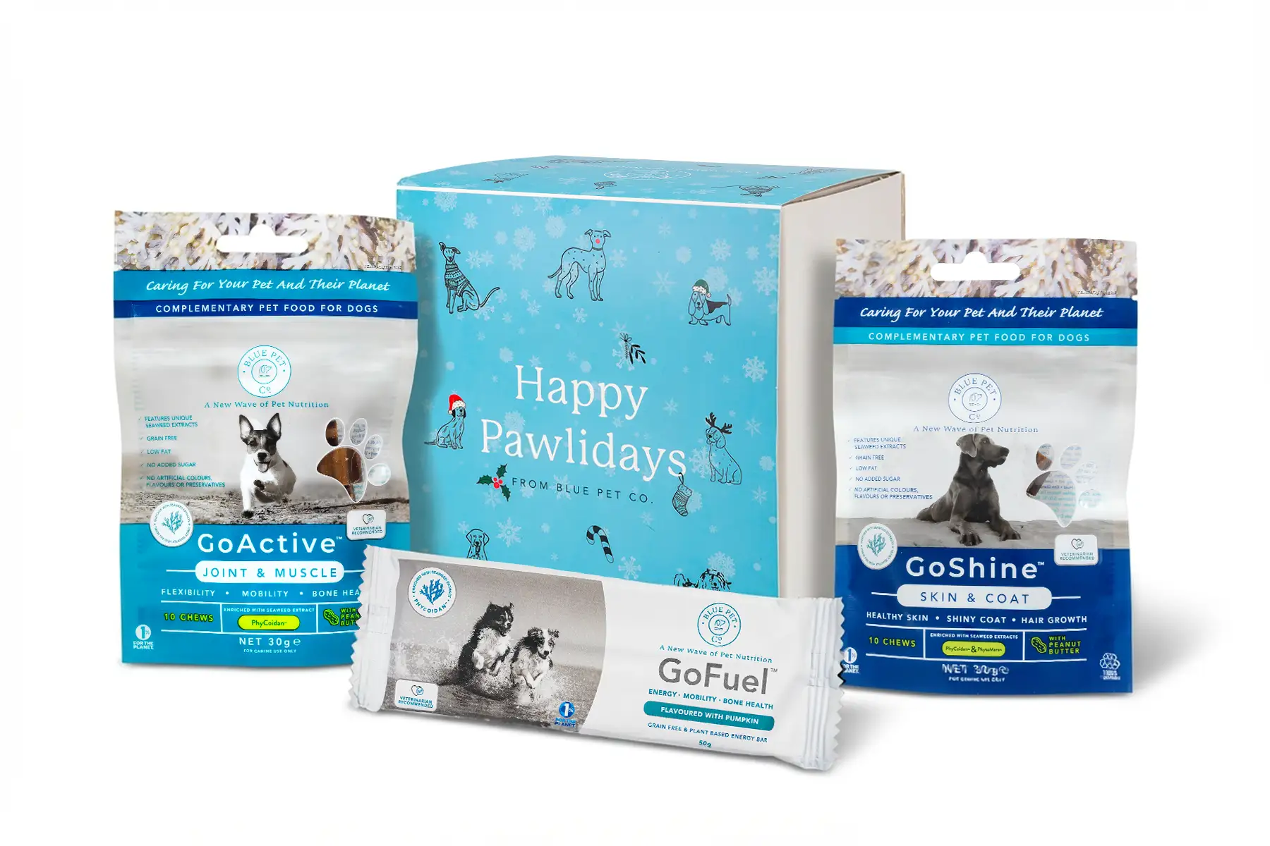 Give your furry friends the perfect healthy Christmas Gift Box. All of our signature natural seaweed dog supplements nicely wrapped.