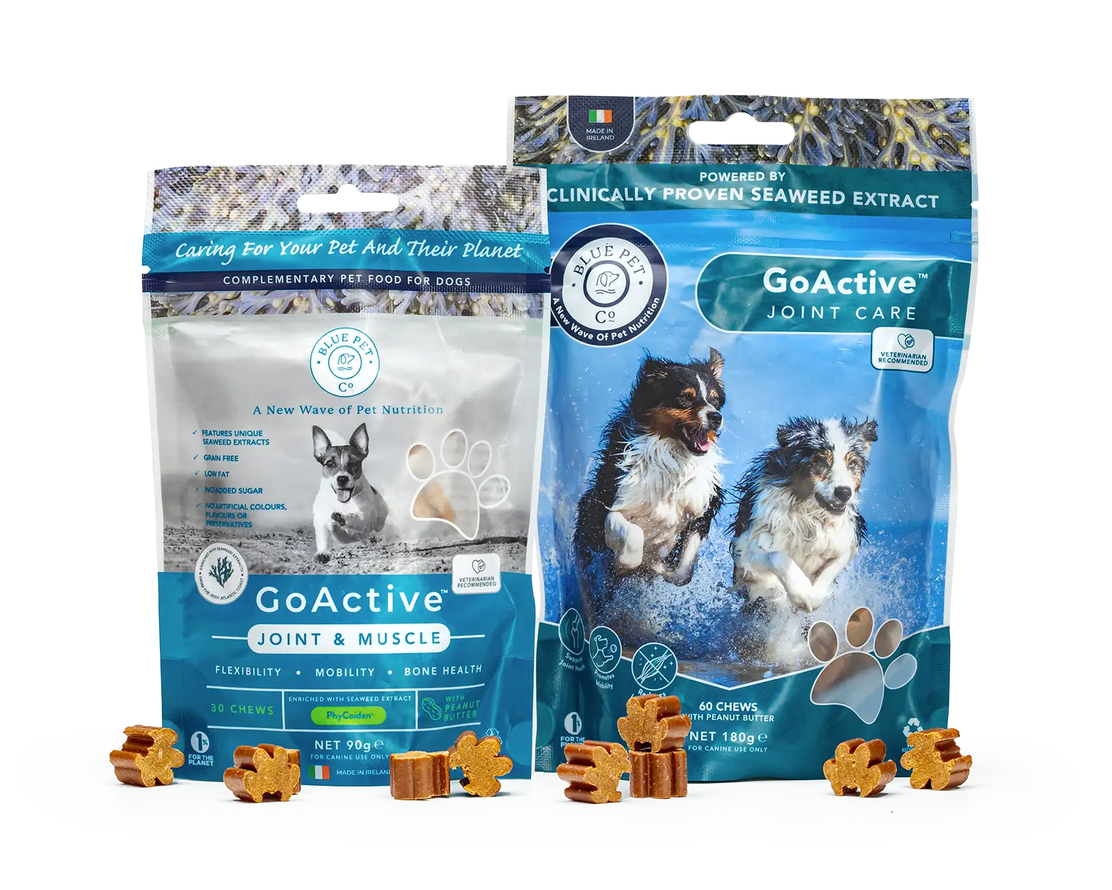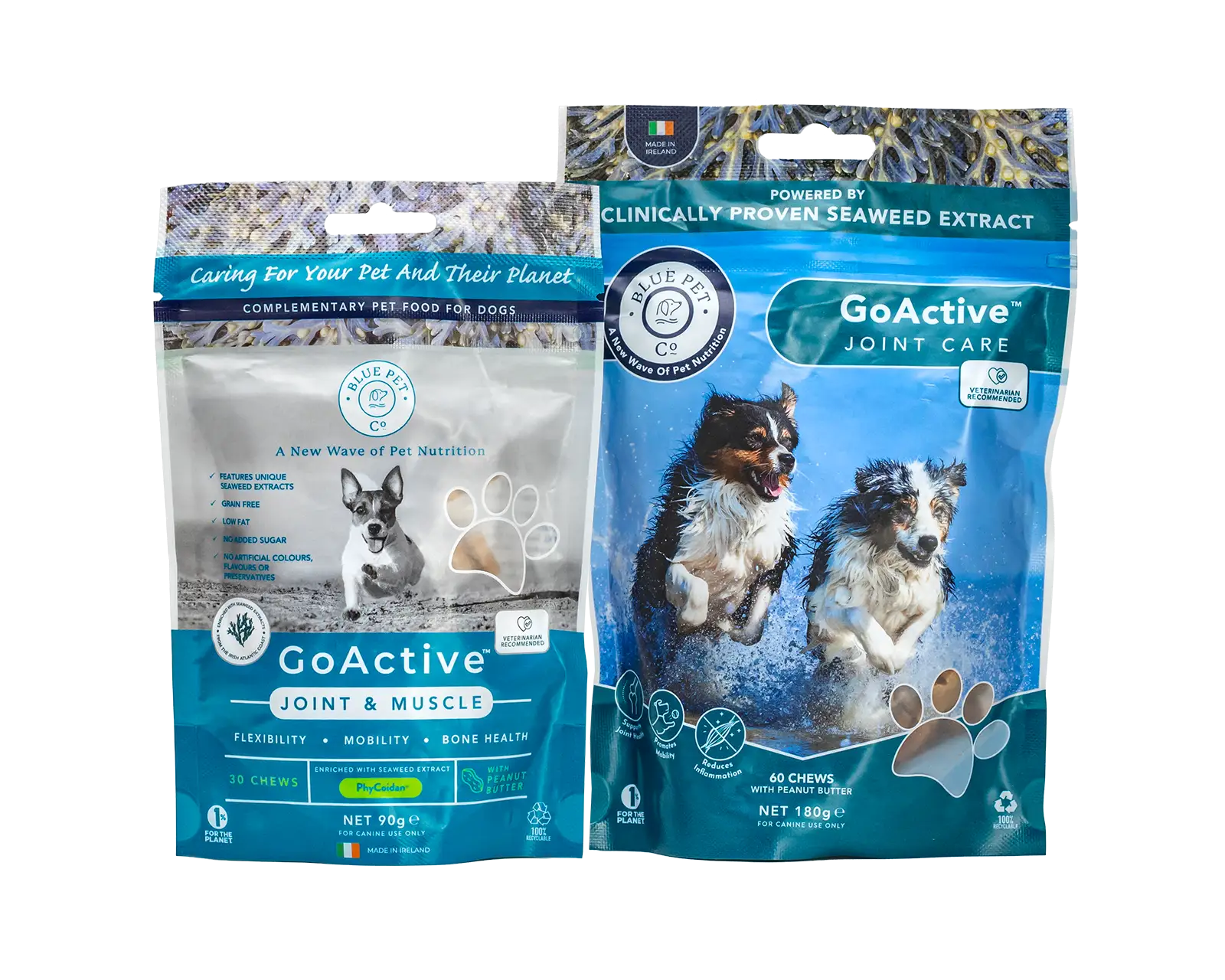 GoActive is a natural dog supplement containing our unique marine complex, PhyCoidan, which has over 60 micronutrients that support healthy bones, muscles and joints as well as keeping your furry friend in good, optimal health.